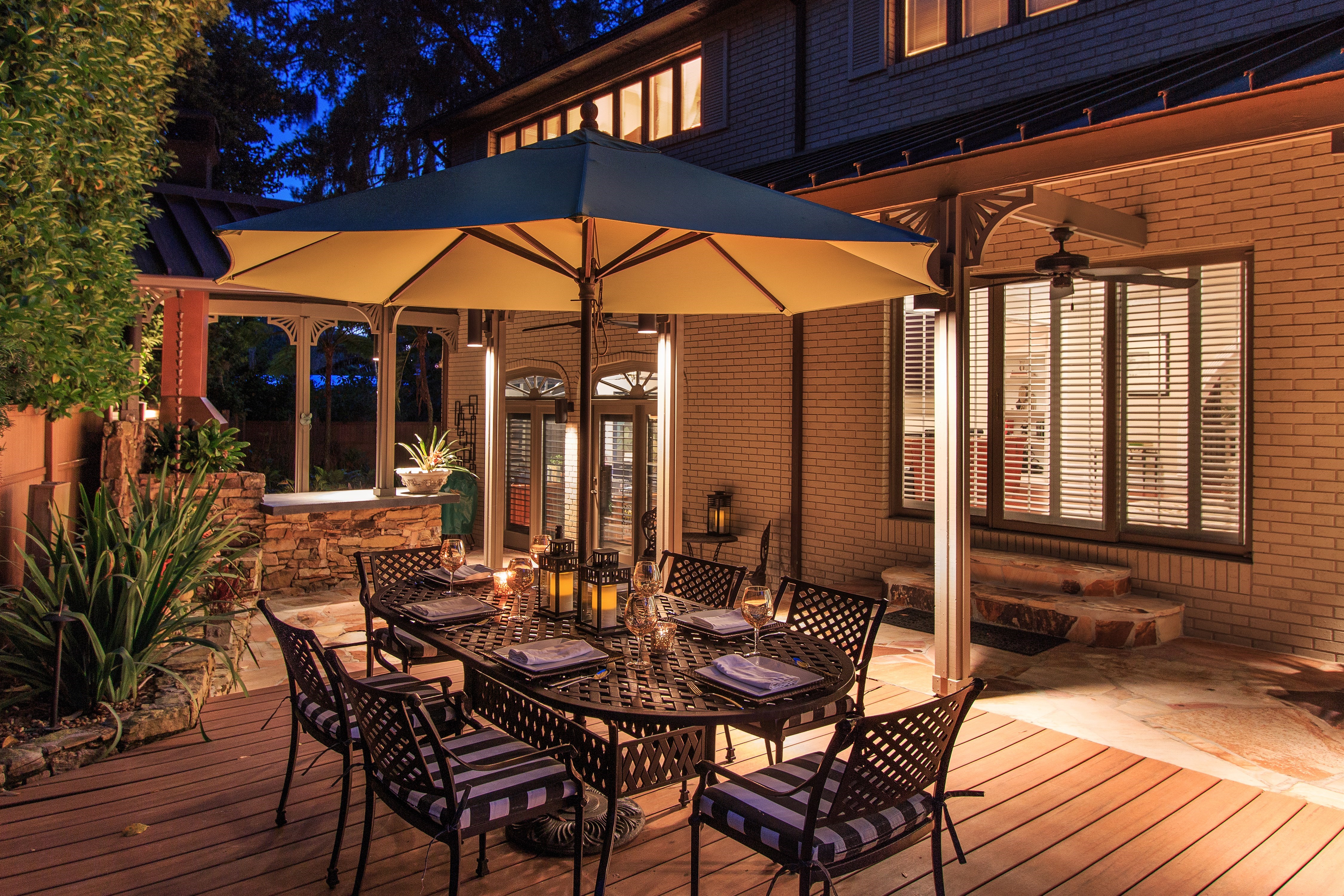 We often take the best photos of homes in the soft twilight hours of the day. A wonderful glow shines through the windows and the sky is a lovely shade of deep blue.